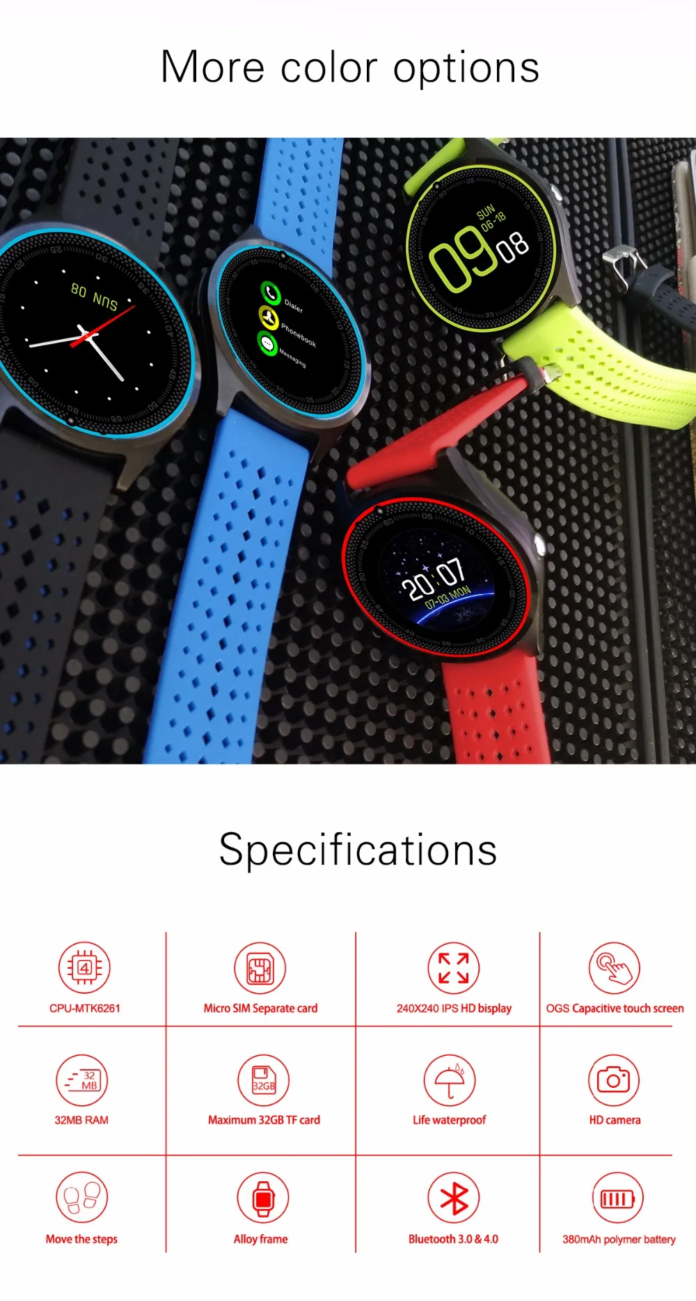Характеристики изделия: частота sim-карты: GSM 850/900/1800/1900 МГц сеть и подключение: только 2g сеть * Технология обработки поверхности: провод из нержавеющей стали основной цвет * ЦП: MTK6261D * Вес: 1,76 унций/50 г * LCD: 1,22 дюйма TFT LCD высокой четкости * Разрешение: 240x240 пикселей * частота: 360 МГц * Экран: OGS емкостный сенсорный экран * Bluetooth: Ver 3,0 * Аккумулятор умных часов: полимерный аккумулятор 350 мАч * Подключение по Bluetooth Режим ожидания: >1 неделя; * Емкость: 128 м + 64 м; поддержка 32 ГБ макс. Карта памяти TF (не входит в комплект поставки) * g-сенсор: Поддержка шагомера, напоминания о сидячем положении, мониторинг сна; Защита от потери; Удаленное фотографирование * Совместимость: Android 4,2 и выше * Язык: английский, русский, немецкий, польский, французский, голландский, испанский, португальский, турецкий, итальянский, арабский, китайский это ip67 водонепроницаемый, посылка для душа или плавания не принимается: * 1 умные часы V9 * 1 usb-кабель * 1 Руководство пользователя Примечание: 1, Потому что эти часы могут поддерживать только интернет 2G. Таким образом, функция, которая нуждается в Интернете, может быть неудобной в использовании. 2. После зарядки смарт-часов для отображения состояния зарядки требуется 1-2 минуты. Обычно 1-2 часа хватает батарей. Время работы в режиме ожидания обычно составляет около 7 дней. 3, нет APK для телефона IOS, поэтому пять функций не могут синхронизироваться с телефоном IOS (1. Защита от потери, 2. Напоминание о сообщении, 3. Notifier, 4. Удаленная камера, 5. Bluetooth music), но все другие функции можно использовать как обычно, как функции, которые не нуждаются в apk и Bluetooth синхронизации телефонных звонков. Телефон Android может поддерживать все функции в описании.