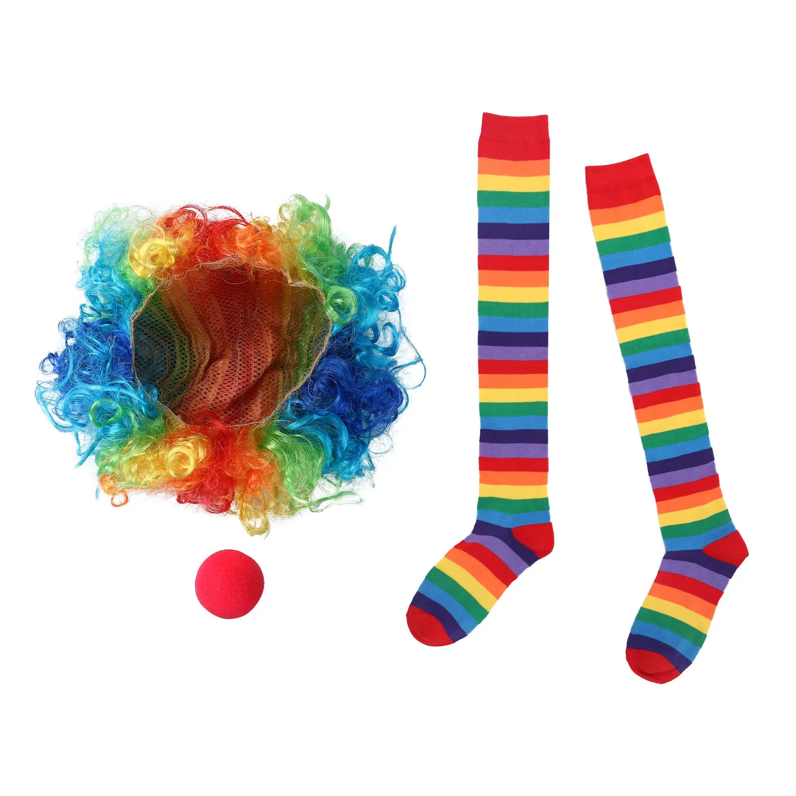 Аксессуары для радужных клоунов, полосатые гольфы до бедра, костюм парика, красный губчатый нос, набор для веселых вечерние носки.