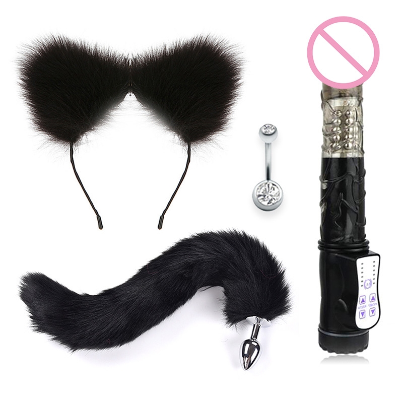 Посылка включает в себя: искусственный хвост, головную повязку на уши, зажимы на соски, вибратор.