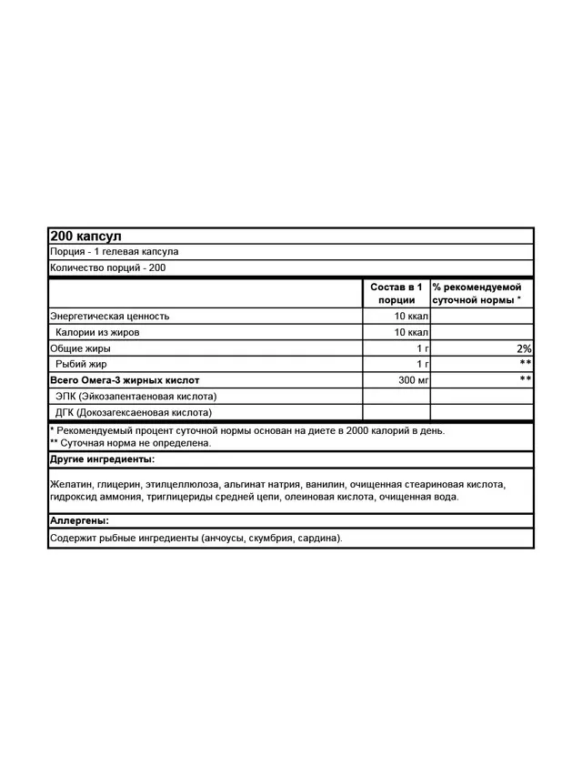 FISH OIL SOFTGELS - это рыбий жир от мирового бренда Optimum Nutrition. Он содержит незаменимые жирные кислоты, которые играют огромную роль в нормальном функционировании нашего организма. Безусловно, мы можем получать эти кислоты, например, употребляю в пищу лосось, но проще и дешевле помочь нашему организму восполнить необходимые кислоты с помощью Fish Oil (не содержит ртуть и полностью очищен от вредных составляющих). Благодаря специальному покрытию, капсулы легко проходят через кислотную среду желудка и дают максимальное количество питательных веществ. Немаловажно, что благодаря специальному покрытию Вы получаете все преимущества рыбьего жира без рыбного послевкусия.