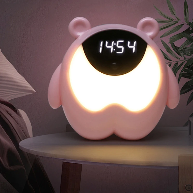 Cute Bear Alarm Clock Night Light Up Motion Sensor Music Lamp For Kids Gifts Baby Children Bedroom Decor