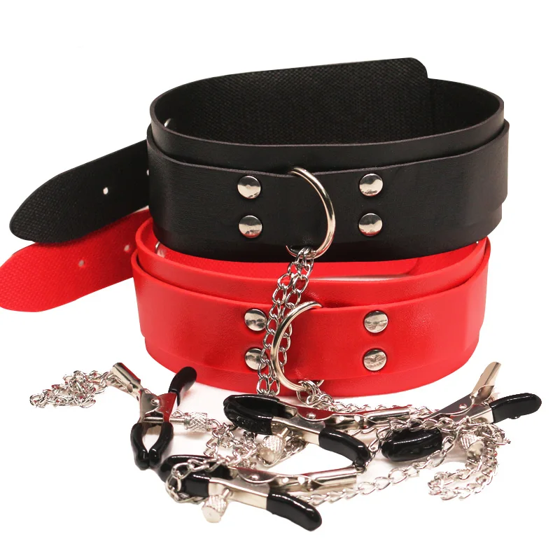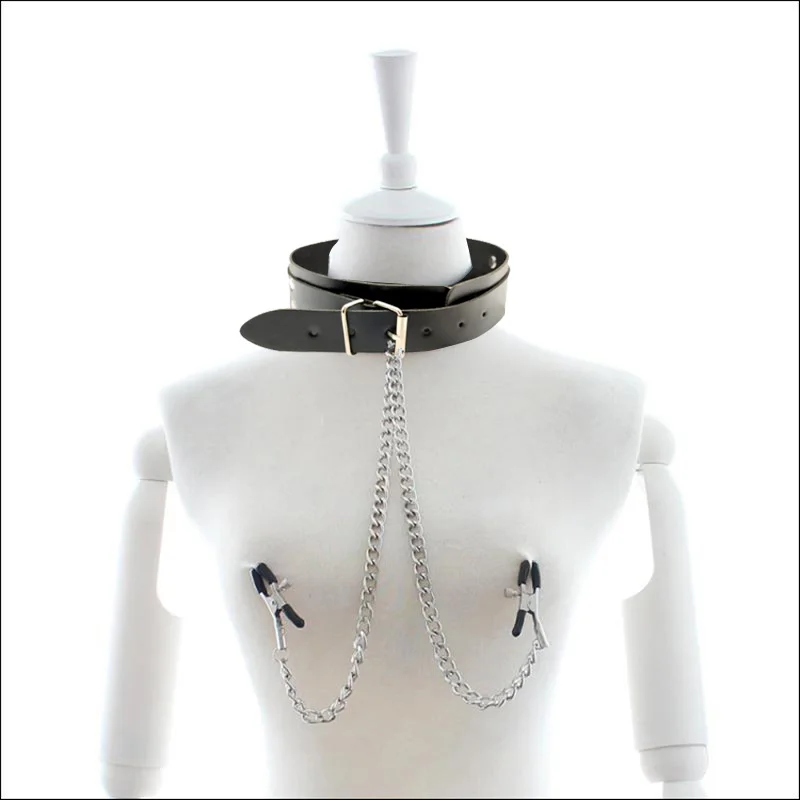 Ошейник-чокер из искусственной кожи с зажимом для груди и соски, цепочка для пар, секс-игрушки SM для женщин, секс-инструменты для пар, игры для взрослых