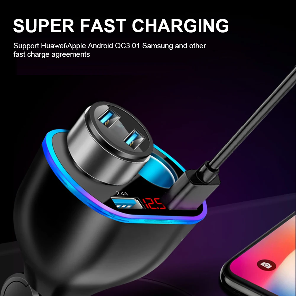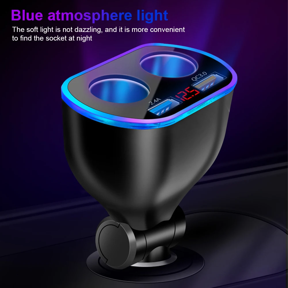 Car Charger USB Cigarette Lighter Type C QC Fast Charging Splitter Cigarette Lighter Charger Adapter Socket Rotatable Digital Voltage For iPhone Huawei Xiaomi Samsun