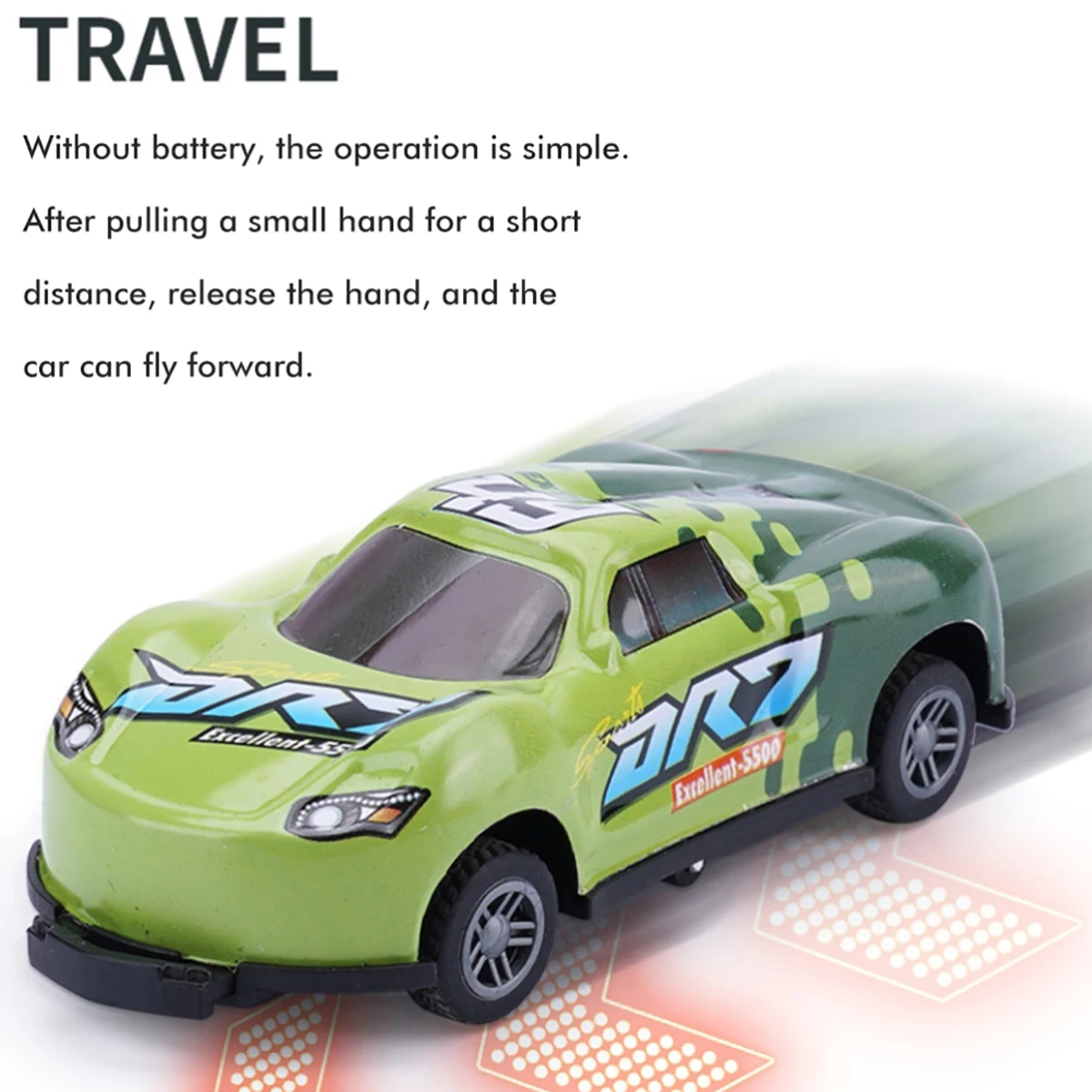 Оттягивайте автомобиль-батарея не требуется. Перетащите трюк автомобиль на определенное расстояние, а затем отправить его, и он будет автоматически двигаться вперед.