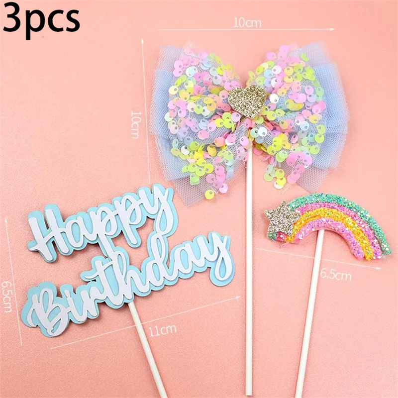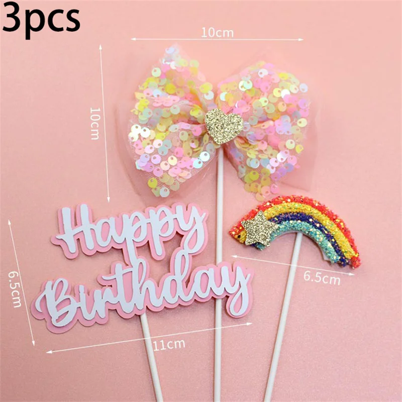3 шт. DIY торт Топпер Радуга лук Звезда Сердце Дети Девочка с днем рождения Свадебные украшения Декор кекса вечерние принадлежности для выпечки