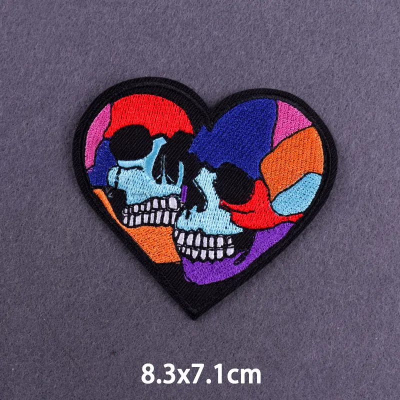 Красные нашивки в виде сердца, черепа, вышитые нашивки на одежду, накладки на губы, скелетные полосы, железные нашивки на одежду, наклейки на одежду, одежда для хиппи