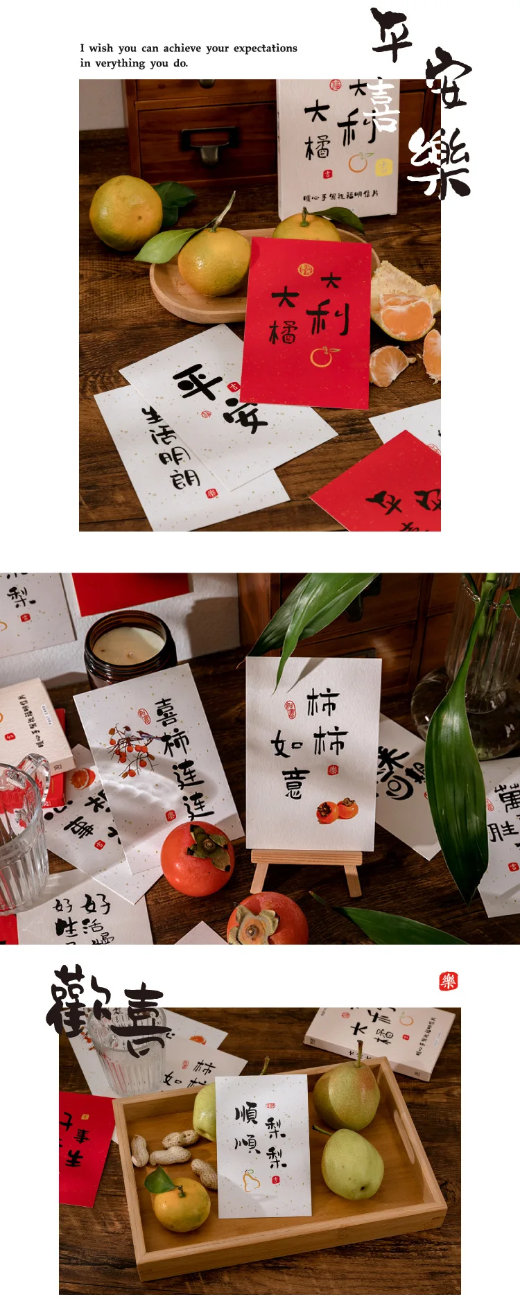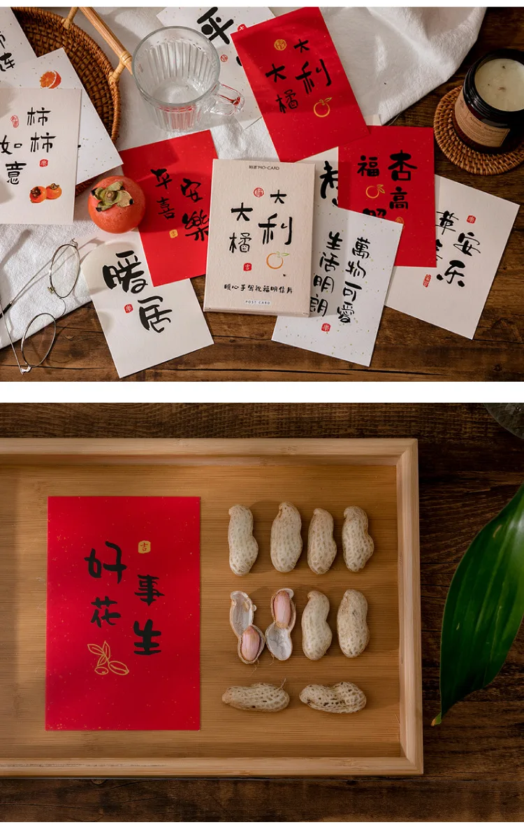 30 шт./упак. классический китайский Новый год поздравительная открытка белого сообщения Diy Материал Бумага на день рождения Новый год День рождения открытки