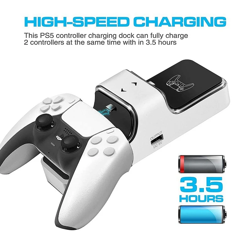 5. Поддержка до 2 ручек для одновременной зарядки. Когда продукт заряжается 2 ручками PS5, ток превышает 1 А; Выход USB A порт зарядного устройства выключен, и ручка зарядки отдана приоритет; когда ток ниже 1 А, выход порта USB A зарядного устройства восстановлен