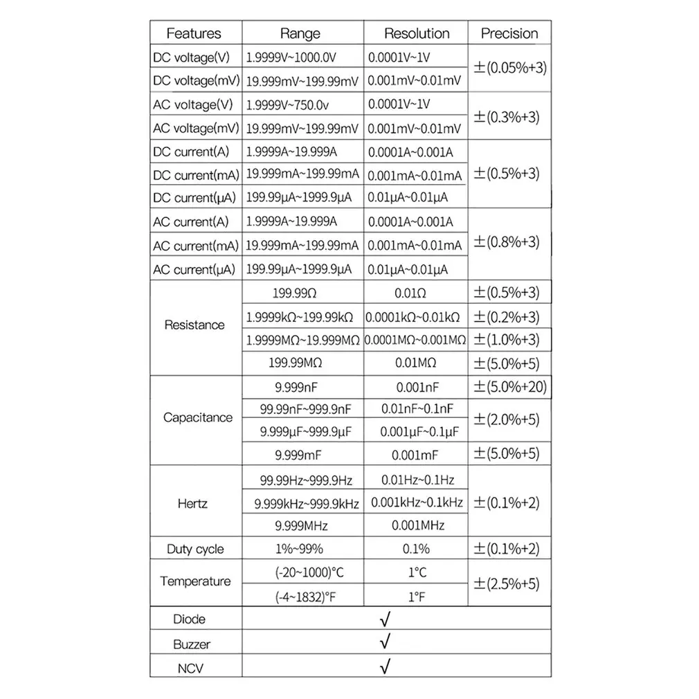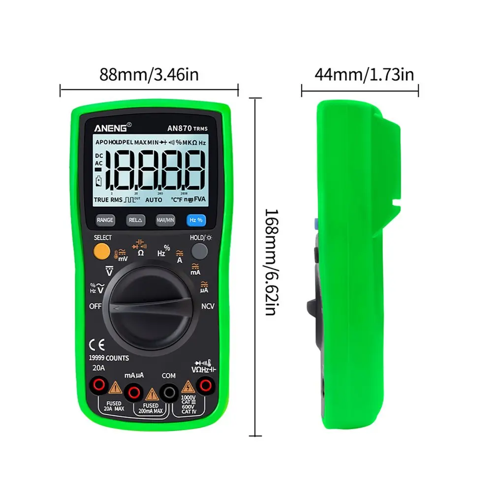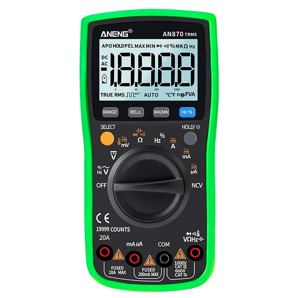 2. Может использоваться для измерения напряжения переменного/постоянного тока, переменного/постоянного тока, сопротивления, емкости, диодов и непрерывности тестирования, температуры, частоты и т. Д.