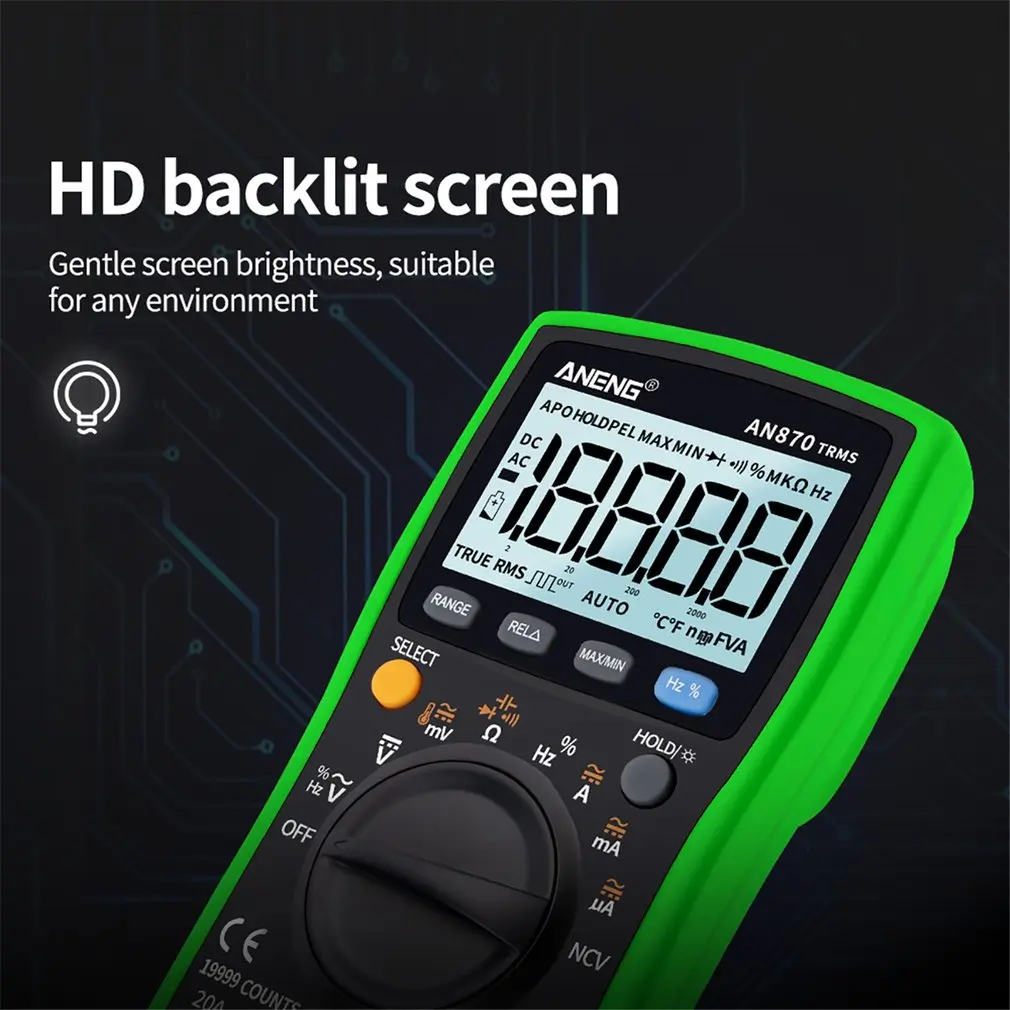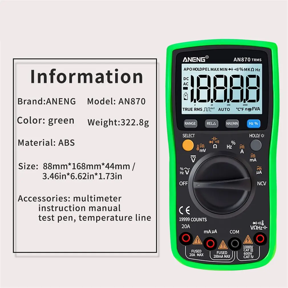 Этот продукт оснащен аккумулятором, true-rms, автоматическим цифровым мультиметром с ЖК-дисплеем 19999 и подсветкой.