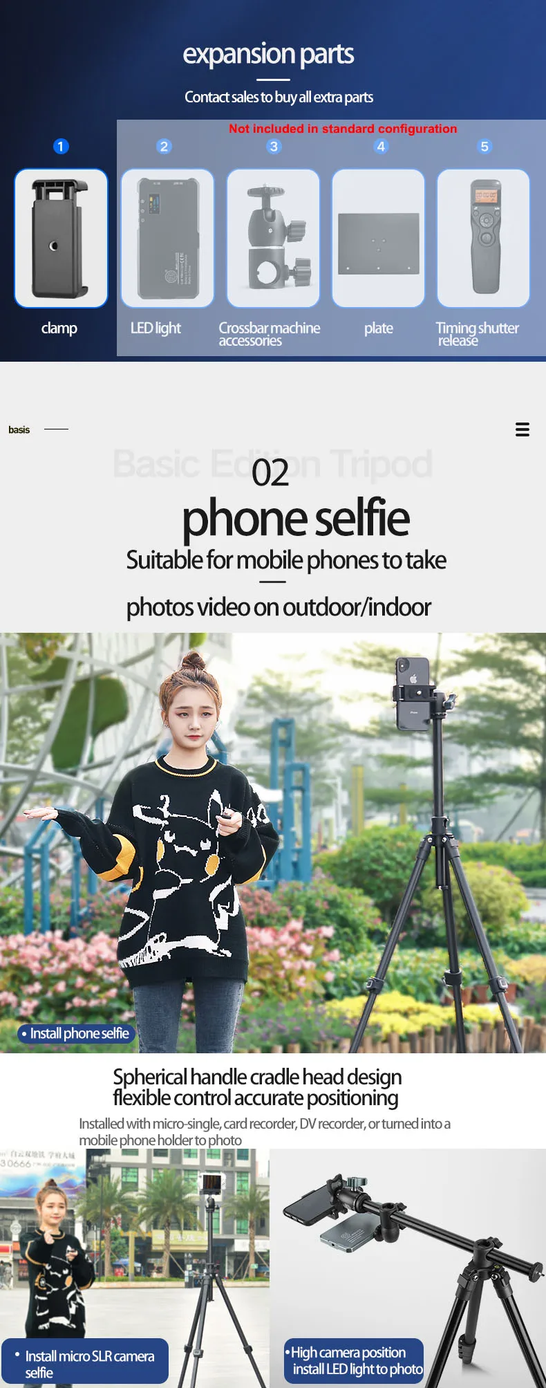 Многофункциональный штатив-Трипод костюм: Телефон Штатив оснащен устойчивой 3-ходовой шаровой головкой может свободно регулировать угол наклона для 360 ° панорамная съемка и пузырьковый уровень помогает держать его уровне. Стандартный крепежный винт для камеры 1/4 "подходит для DSLR, SLR, экшн-камеры, GoPro и т. д. Максимальная грузоподъемность составляет 5 кг. Не рекомендуется использовать с большим и тяжелым оборудованием.