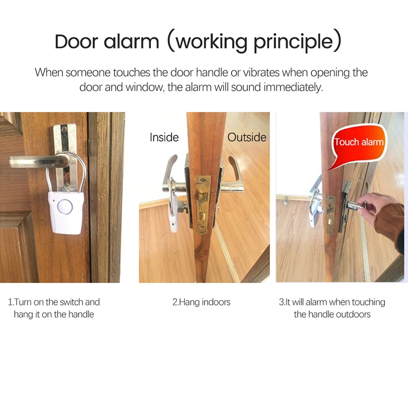 5. Когда красный светильник мигает в течение 30 секунд, а затем останавливается, продукт официально входит в режим ожидания. В это время кто-то за дверью прикасается к ручке двери, и будильник длится около 1 минуты, а затем автоматически останавливается, И Красный светильник мигает в течение 30 секунд, чтобы снова войти в режим ожидания.
