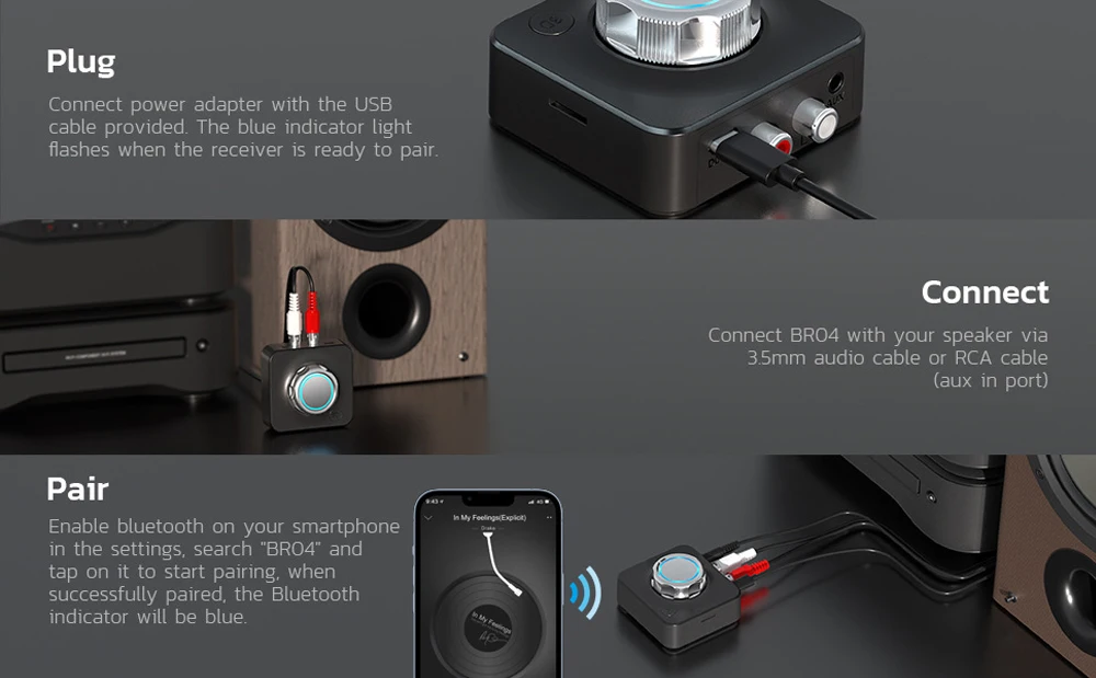 5. Широкая совместимость. С помощью прилагаемого 3,5 мм кабель и 3,5 мм к RCA кабель адаптер может быть широко использован в компьютеру, ноутбуку, домашней стереосистеме, наушники, смартфонов, MP3 cd-проигрыватели, и т. д.