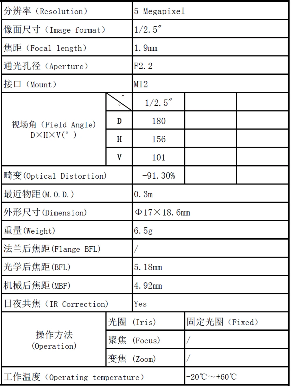 Упаковка включает в себя:1 шт. 1,9 мм M12 крепление объектива