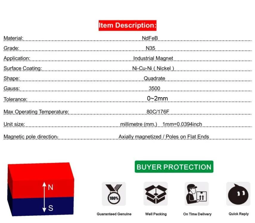 1. The NdFeB magnet is sold by size, the unit of measurement is millimetre, please pay attention to the size.