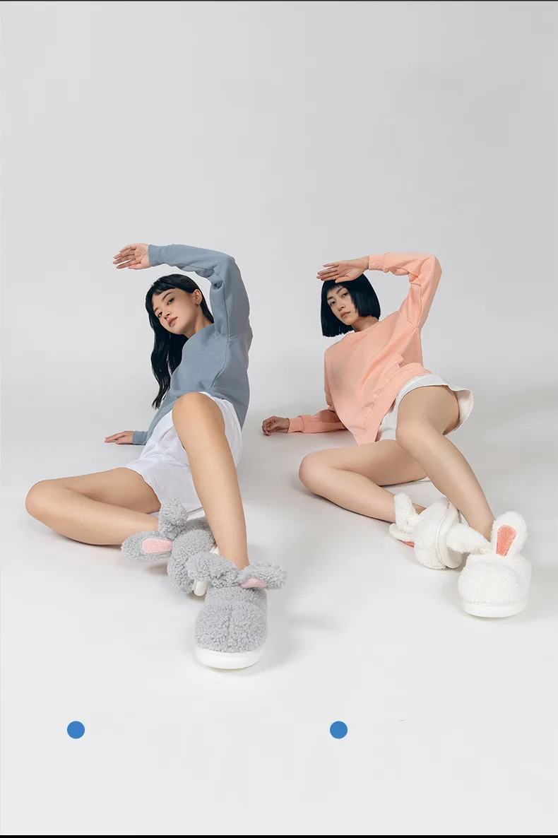 Новые зимние тапочки с милым мультяшным кроликом для мужчин и женщин; Меховые шлепанцы для влюбленных; Бархатные теплые женские домашние тапочки с мягкой подошвой