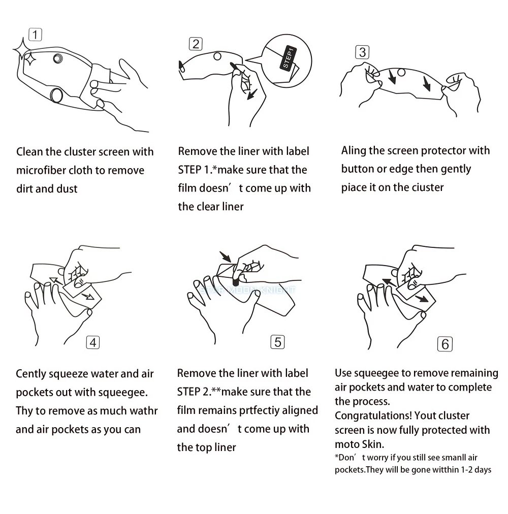 7: Используйте выдавливание, чтобы удалить оставшиеся карманы воздуха и воды для завершения процесса. Поздравляем! Ваш экранный кластер теперь полностью защищен нашим продуктом.