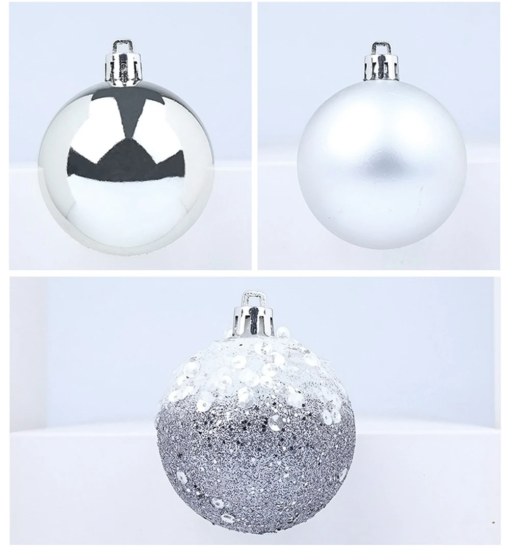 Рождественский шар изготовлен из пластикового материала, усовершенствованной технологии гальванического покрытия и сверхплотной упаковочной коробки. Он более прочный во время длительной транспортировки и подвески. Сверхплотная упаковочная коробка предотвращает поломку мяча во время транспортировки.