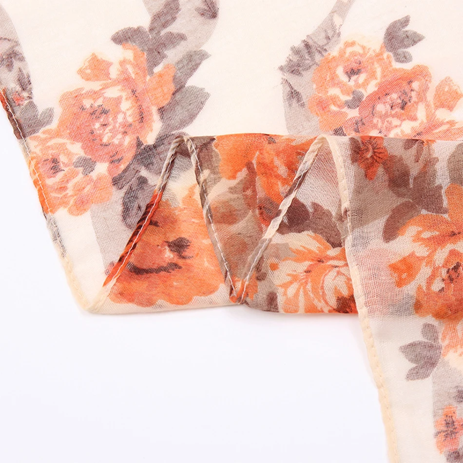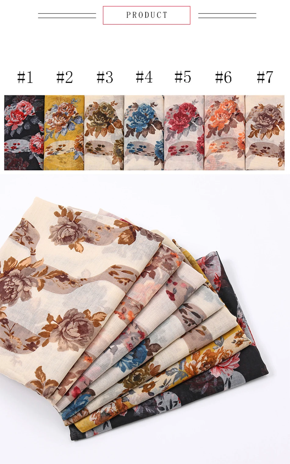 FS Новый Зимний Элегантный ретро большой цветок Вуаль шарф для женщин хлопок лен ощущение теплой шали желтый оранжевый Тонкий пляжный хиджаб 2021