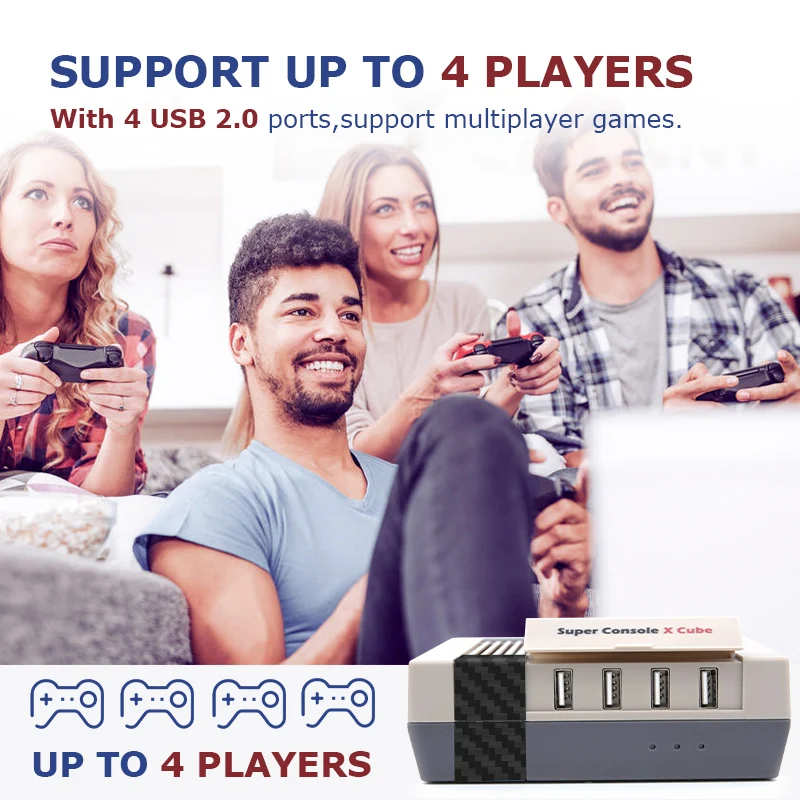 The super host x Cube uses four USB ports, allowing four players to play games together at the same time. No need for a connector USB external, plug and play.