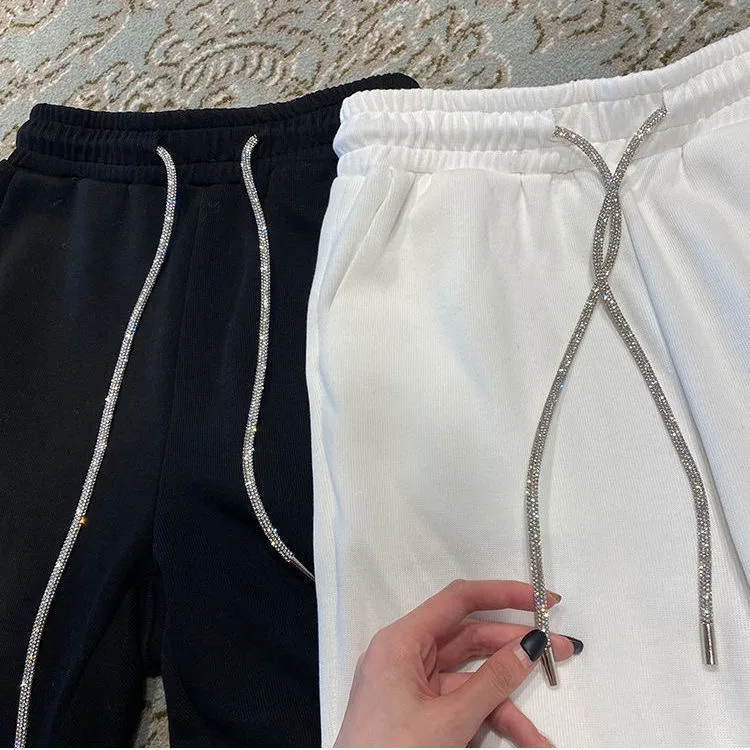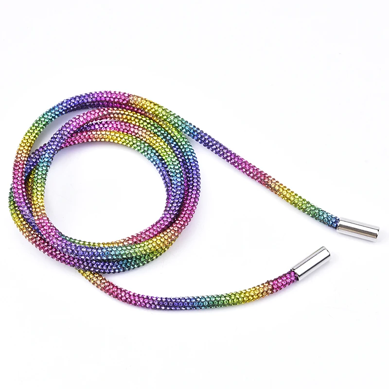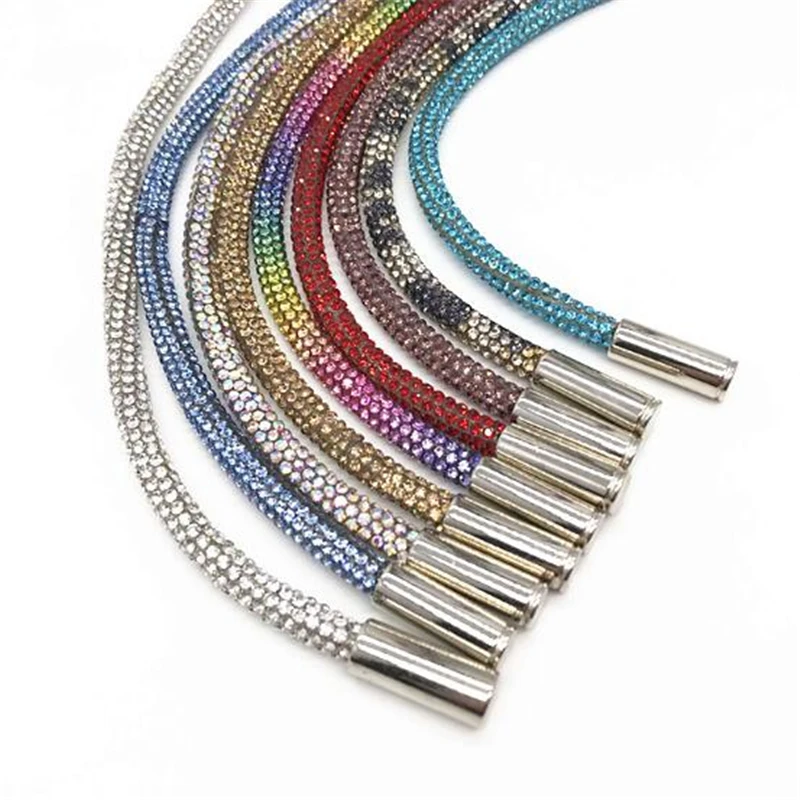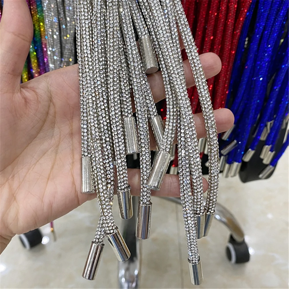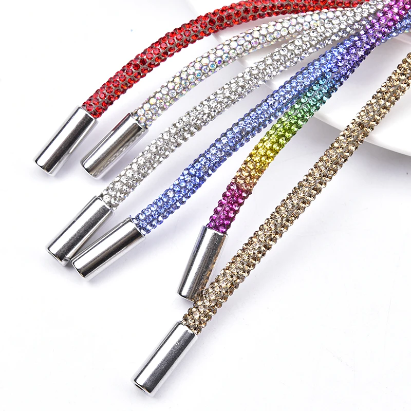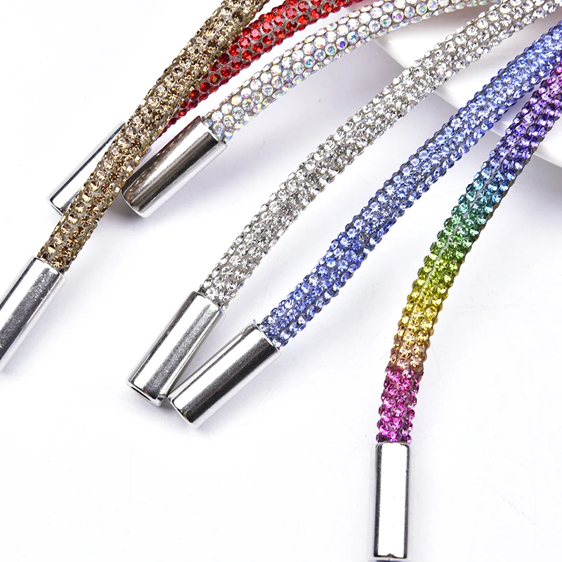 Готовые блестящие круглые стразы с блестящей веревкой для одежды, сменный шнурок с серебряными или золотыми металлическими головками