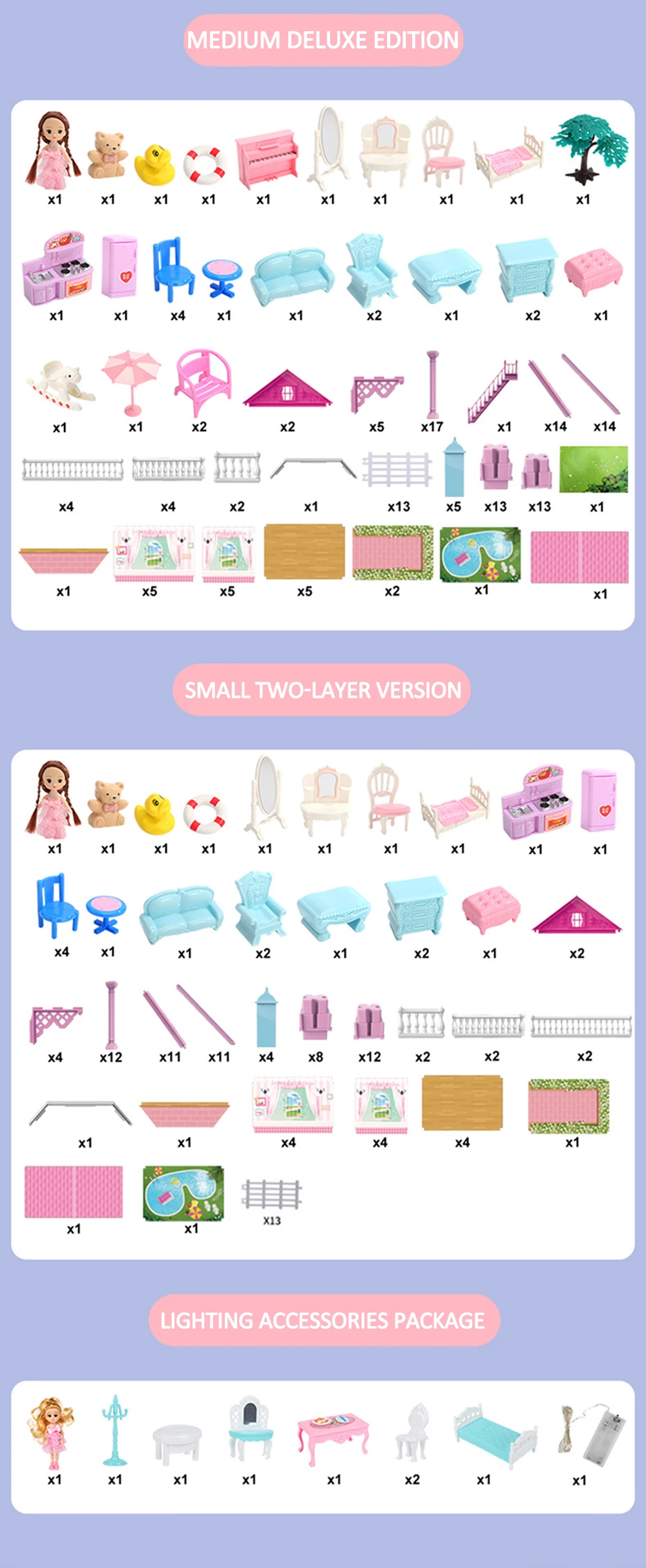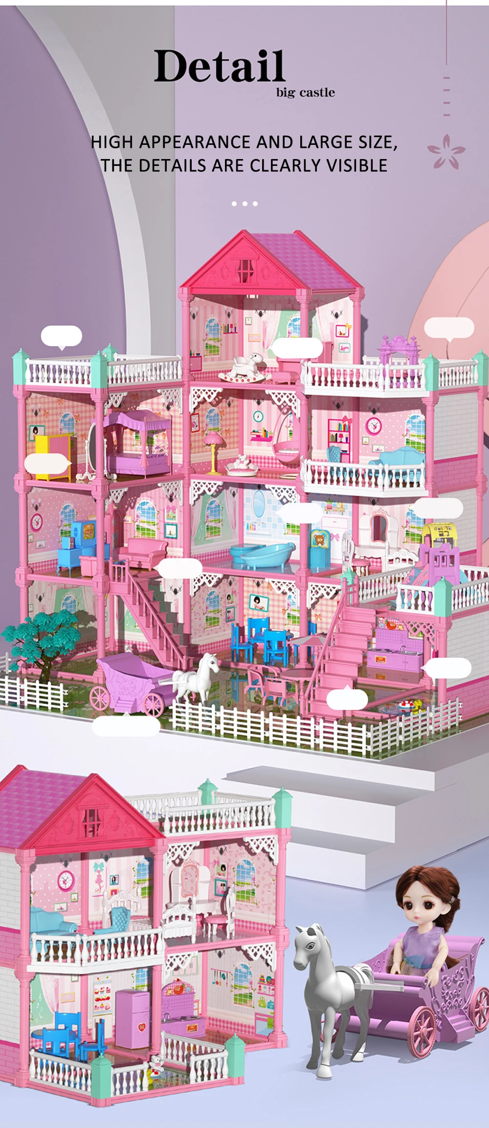 Большой дом Diy кукольный домик для детей домик Барби кровать диван стол кукольная мебель миниатюрный кукольный домик рождественские подарки Детские игрушки