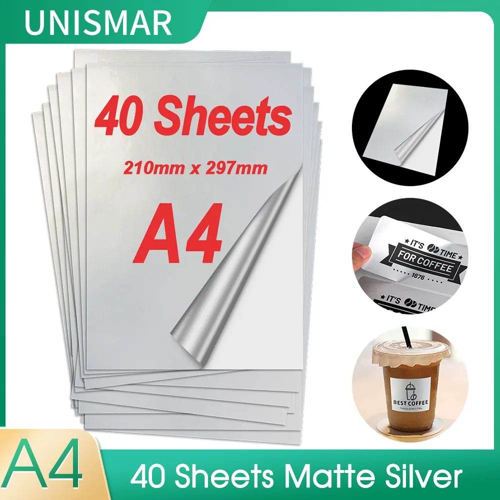 40 листов ПЭТ матовая Серебряная Виниловая наклейка для печати А4 бумага самоклеящаяся защищающая этикетка DIY печатная бумага для струйного принтера