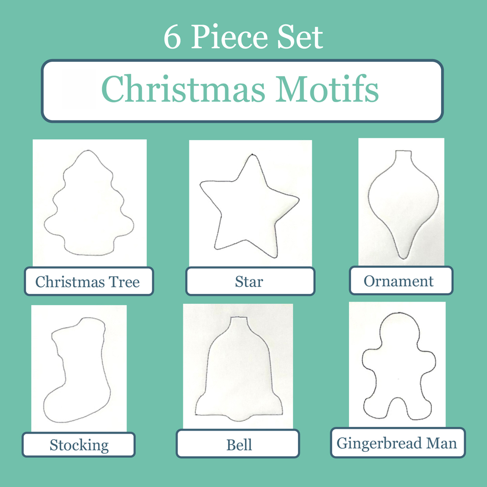 2. Each template features markings for perfect lineups, vertically and horizontally, and include an easy access thread slot. This is your complete cookie cutter 4″ Design set with the Christmas Tree, Star, Ornament, Bell, Stocking, and Ginger bread Man!