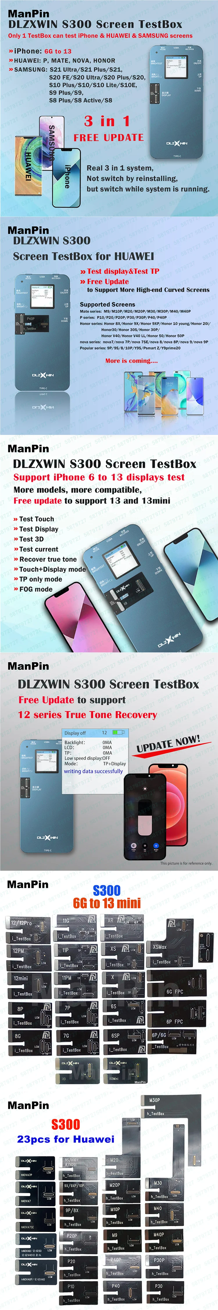 3in1 S300 LCD Screen Tester For iPhone 13 12 11 Pro MAX XS 8 7 6 For Huawei P Mate Nova True Tone Recover 3D Touch Testing Tool