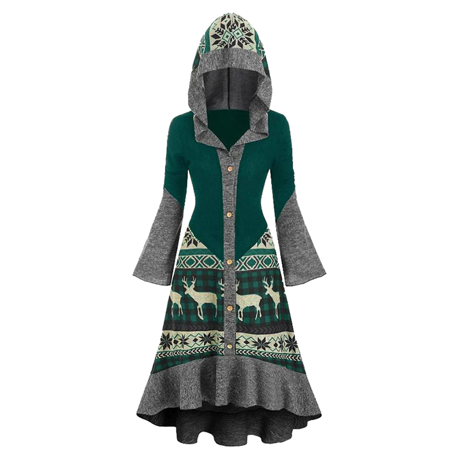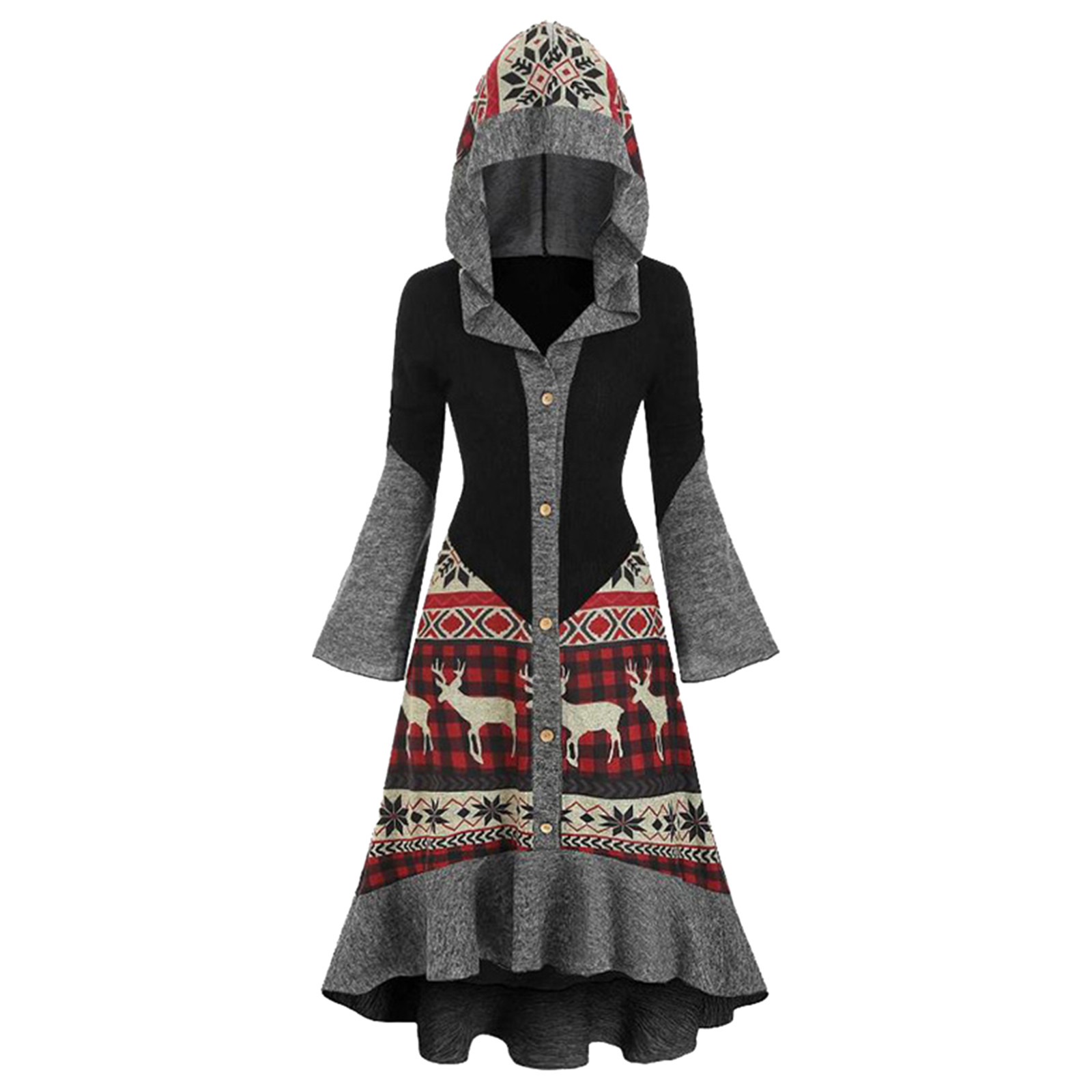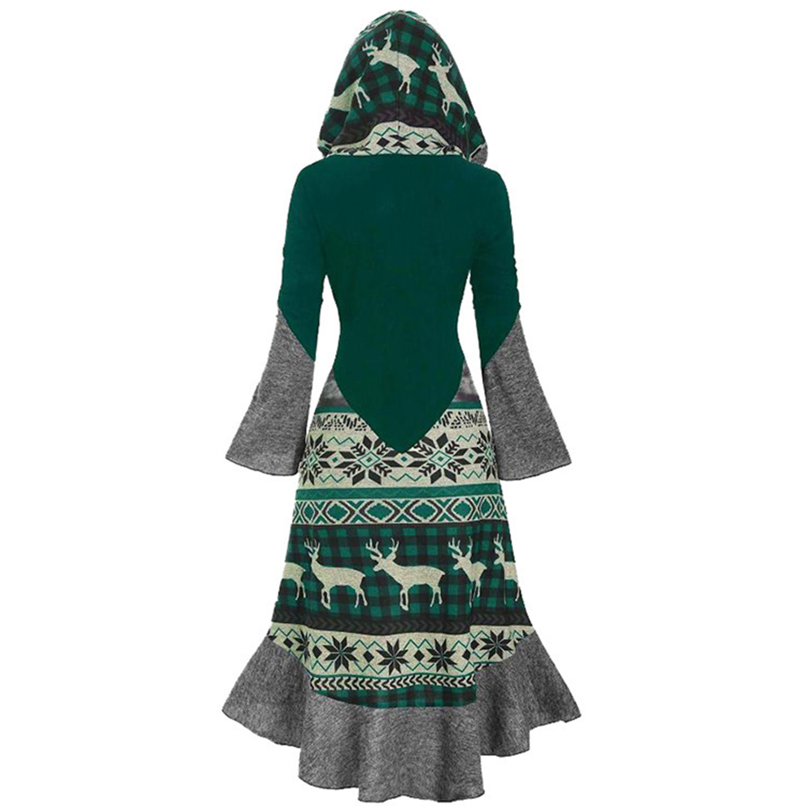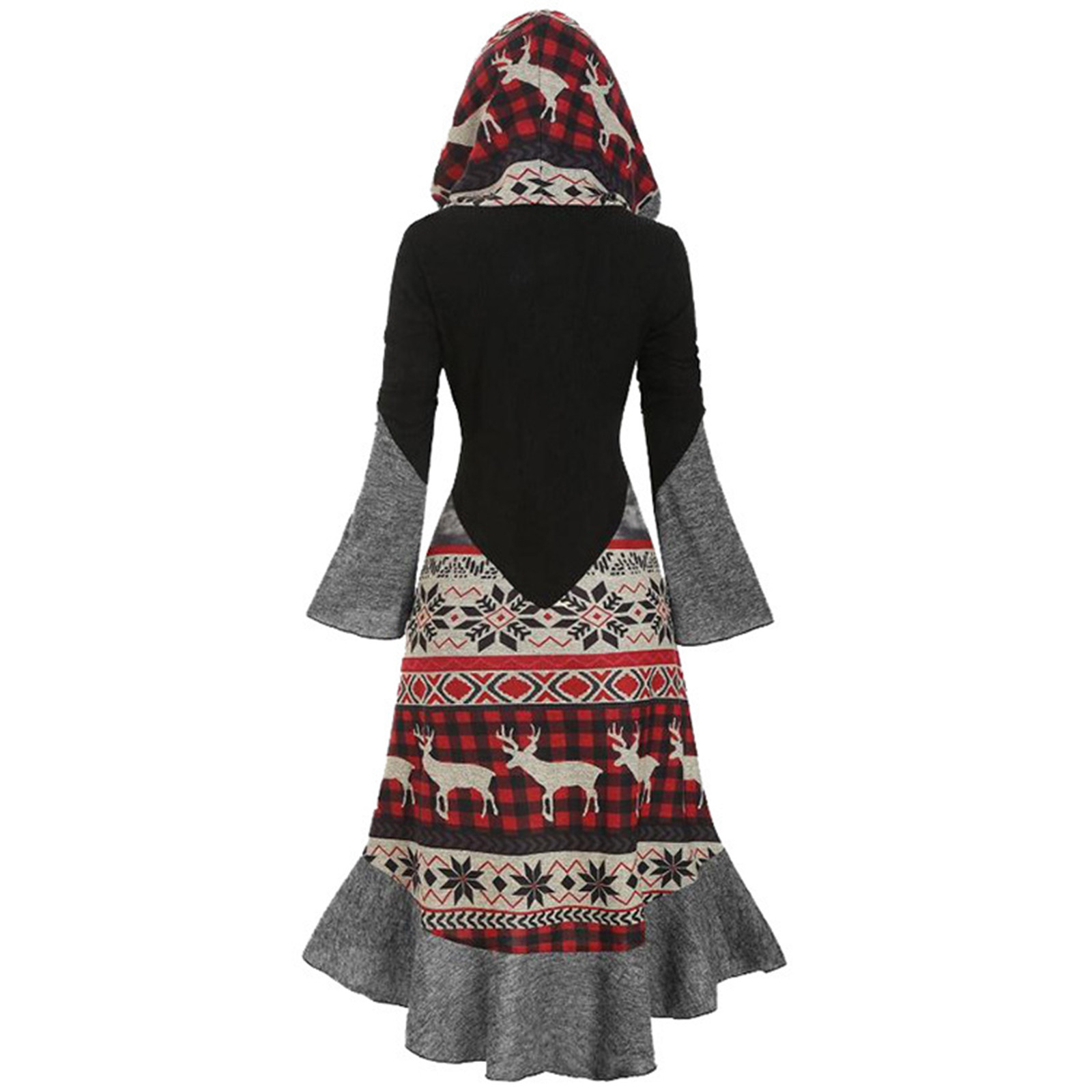 Женское трикотажное платье размера плюс с капюшоном и рождественским оленем