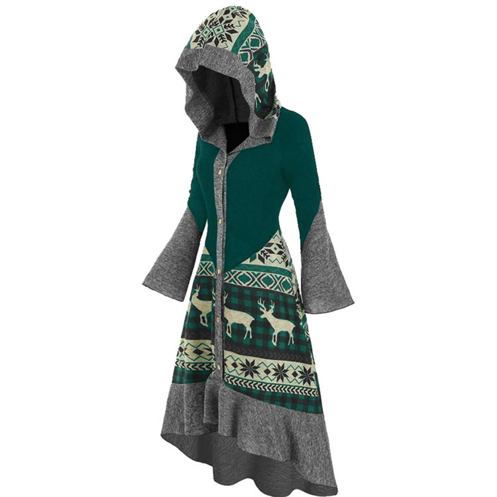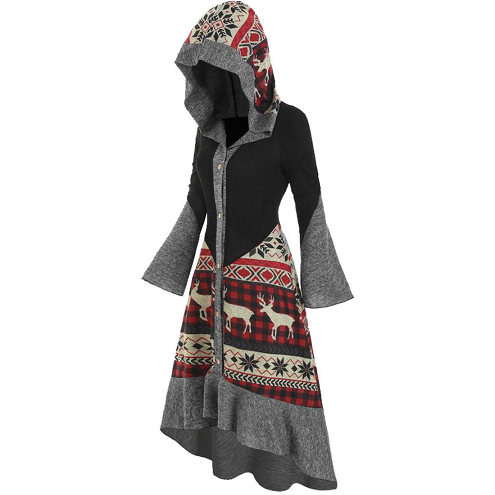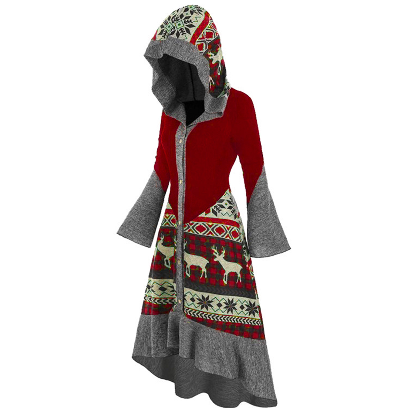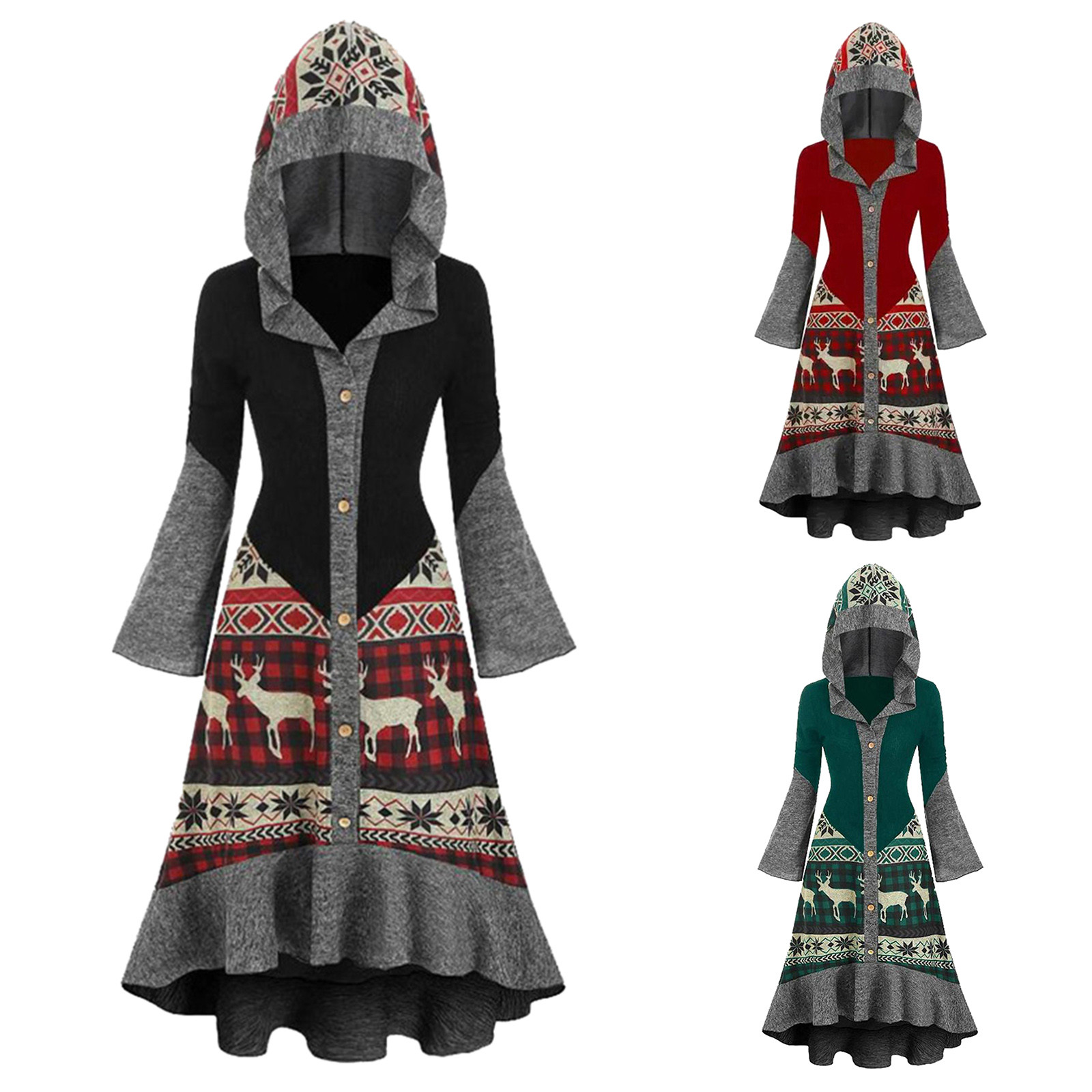 Женское трикотажное платье размера плюс с капюшоном и рождественским оленем