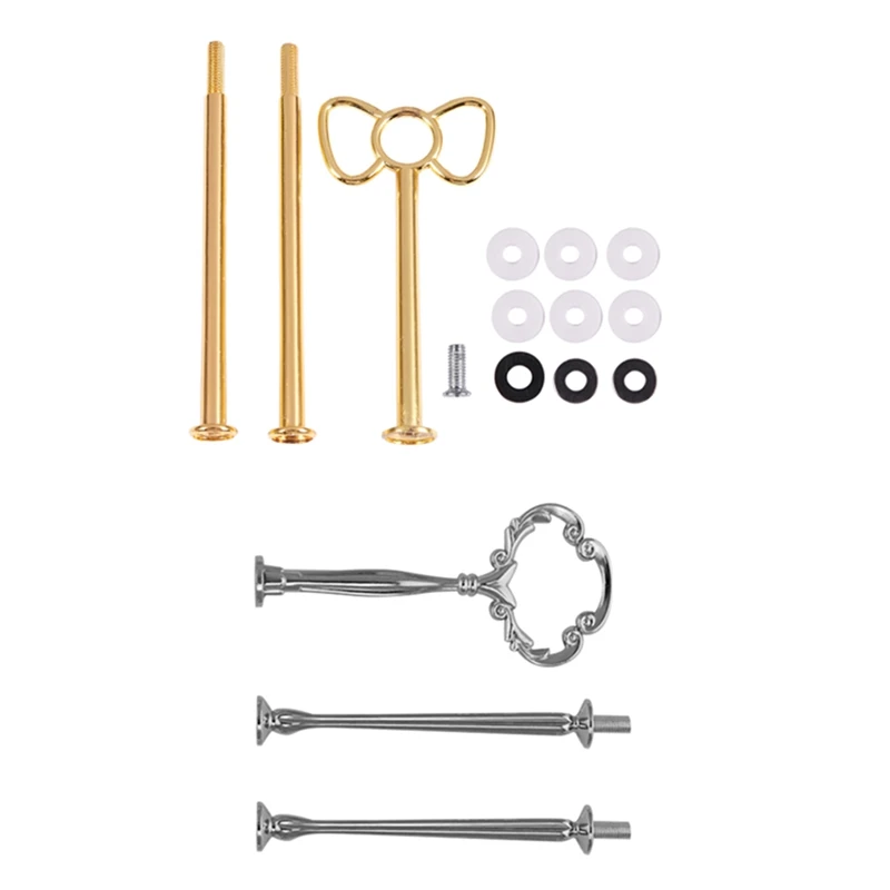 6 комплектов, 3 уровня, подставка для торта, тяжелая металлическая Центральная ручка, фурнитура, Форма стержня, 5 комплектов, серебро и 1 комплект, золото