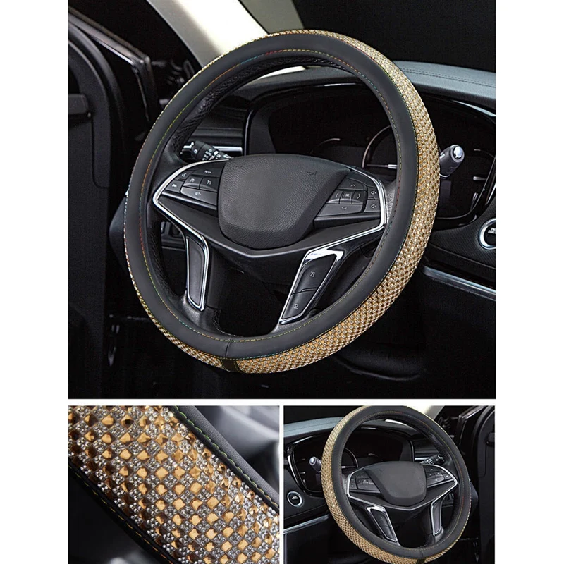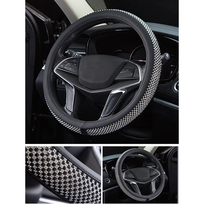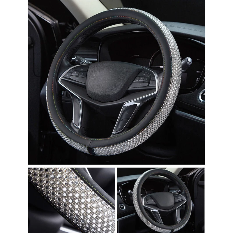 1-Crystal Steering Wheel Cover Material: High Quality PU Leather and Top diamond craftwork: more stable compare with other same products,and will not hurt your hands.