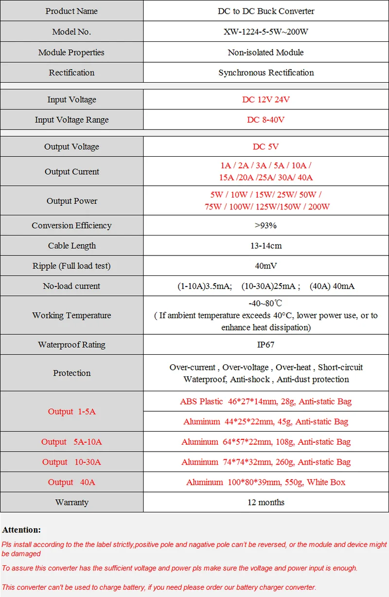 DC в DC 12V 24V в 5V (1-40A) понижающий преобразователь
