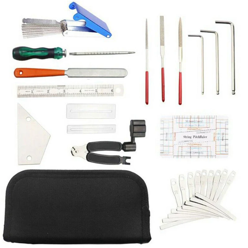 Дополнительные сведения: 1 * катушка, 1 * Выравнивающая линейка, 2 * Серебряная прокладка, 1 * линейка расстояния, 1 * оранжевая Лада файл, 3 * шлифовальный файл, 3 * гаечный ключ настройки, 1 * синяя отвертка, линейка 9 * T, линейка 1*15 см, 1 * синяя подушка для рояля, 1 * сумка для хранения