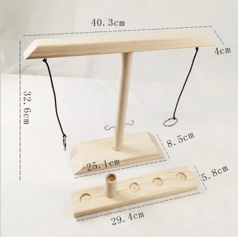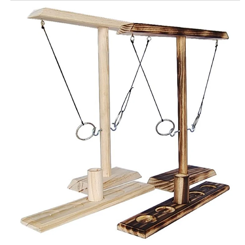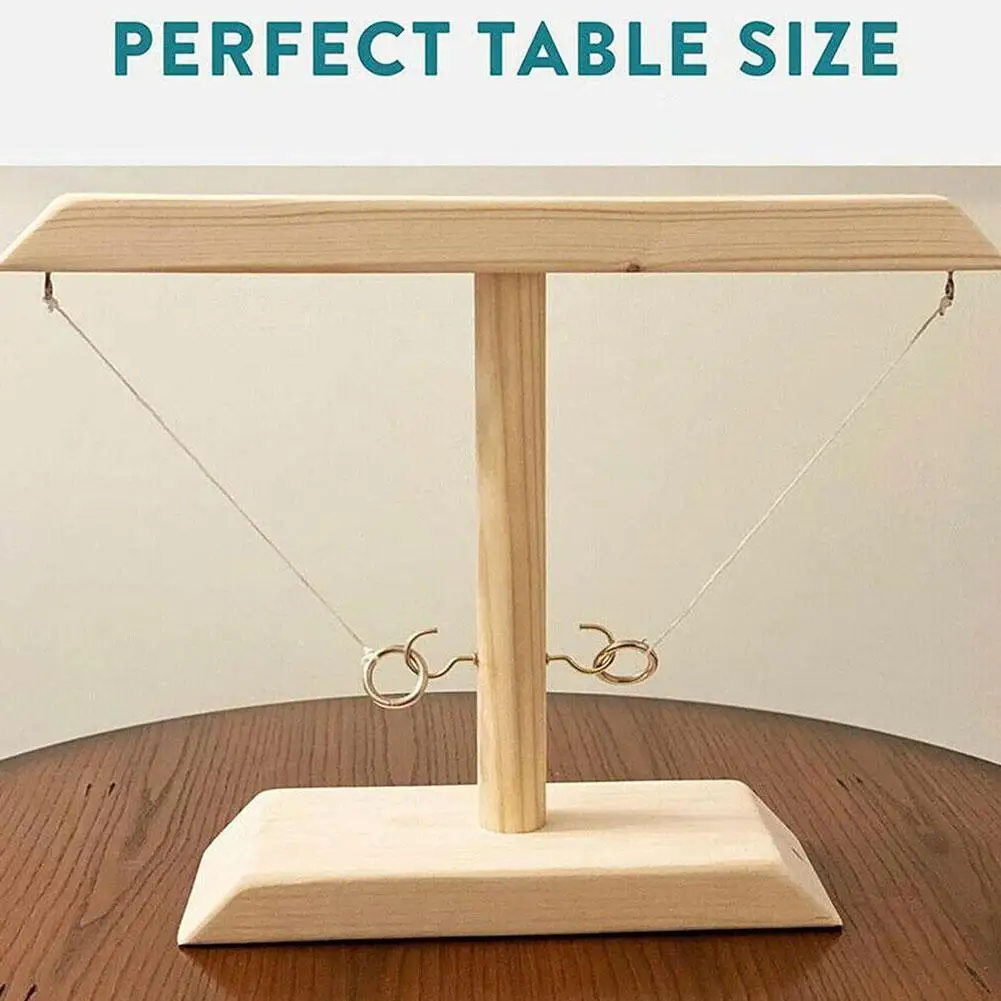 Take rings and go! Each time you land the hook, move the wooden cup 1 space towards your opponent.