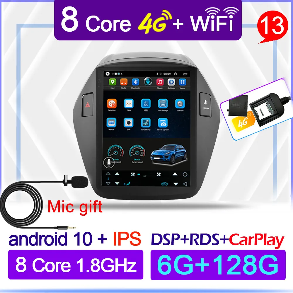 Автомобильный Android 10 плеер для Hyundai Tucson IX35 2010 2011 2012 2013 2014 2015 2din радио мультимедиа GPS 2 din для Tesla style