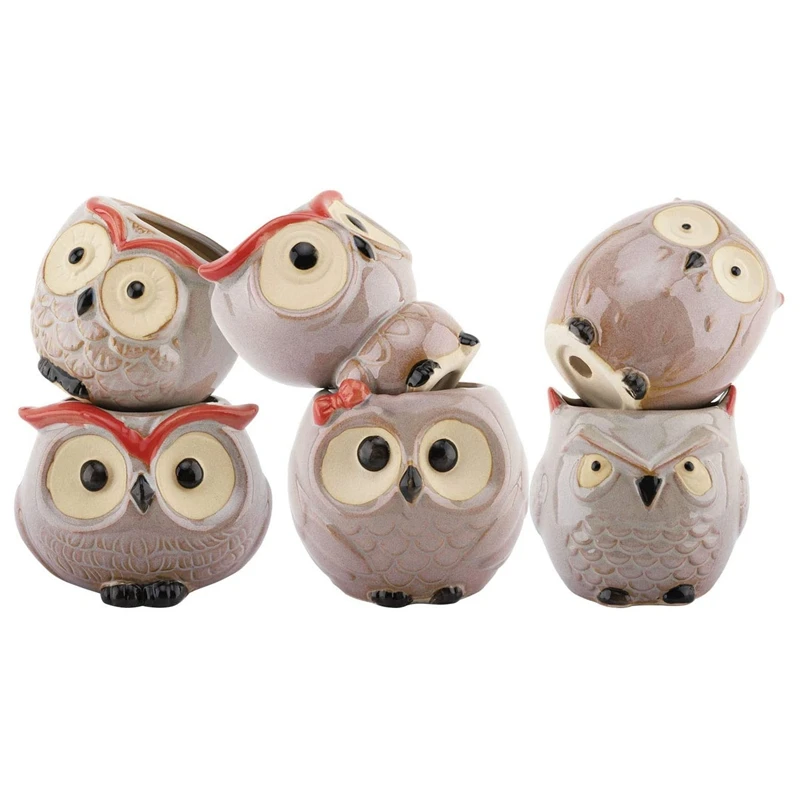 Суккулент горшок для растений 6 шт. Керамика Сова Цветок Бонсай растительные горшки для кактуса травы новоселье подарок Плантатор Контейнер Набор