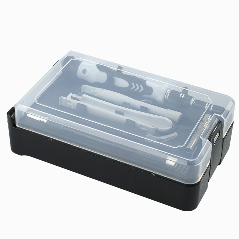 【С профессиональным ящиком для хранения 】 Наборы инструментов для ремонта оснащены ящиком для хранения, изготовленным из материала PP, который устойчив к ударам.