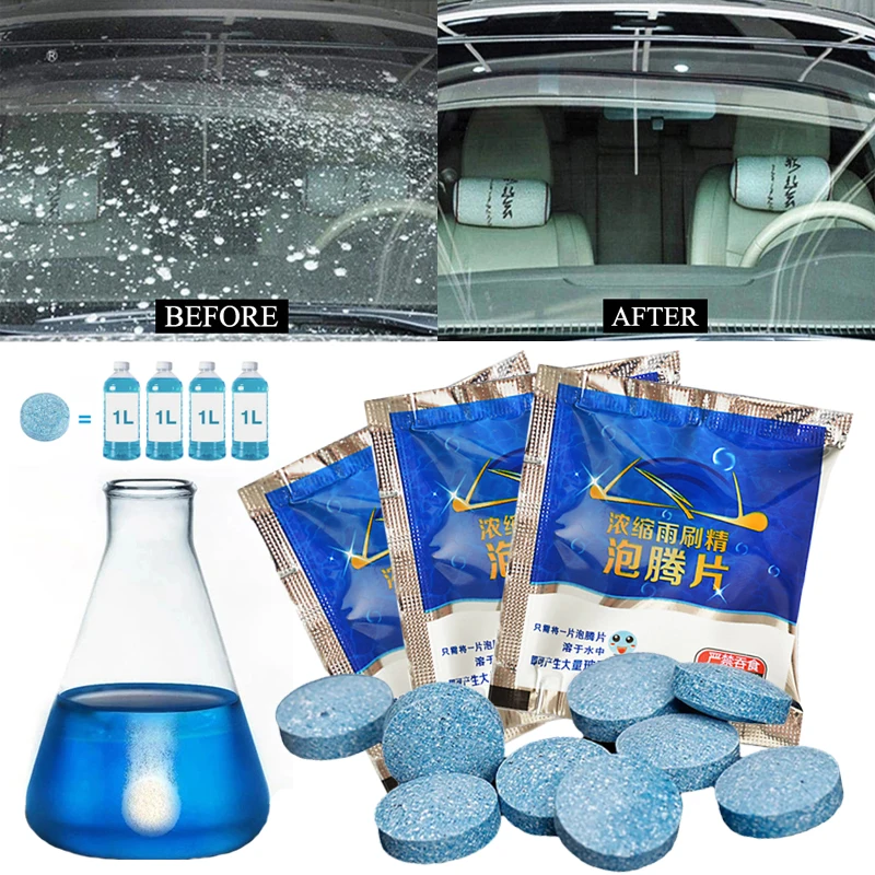 Только 1 штука, автомобильный шипучий планшет и 4 литра воды, вы получите 4 литра автомобильного лобового стекла, концентрированная шайба для очистки и смазывания лобового стекла, что может уменьшить трение стеклоочистителя и стекла, держите лобовое стекло вашего автомобиля в аккуратном и хорошем рабочем состоянии.