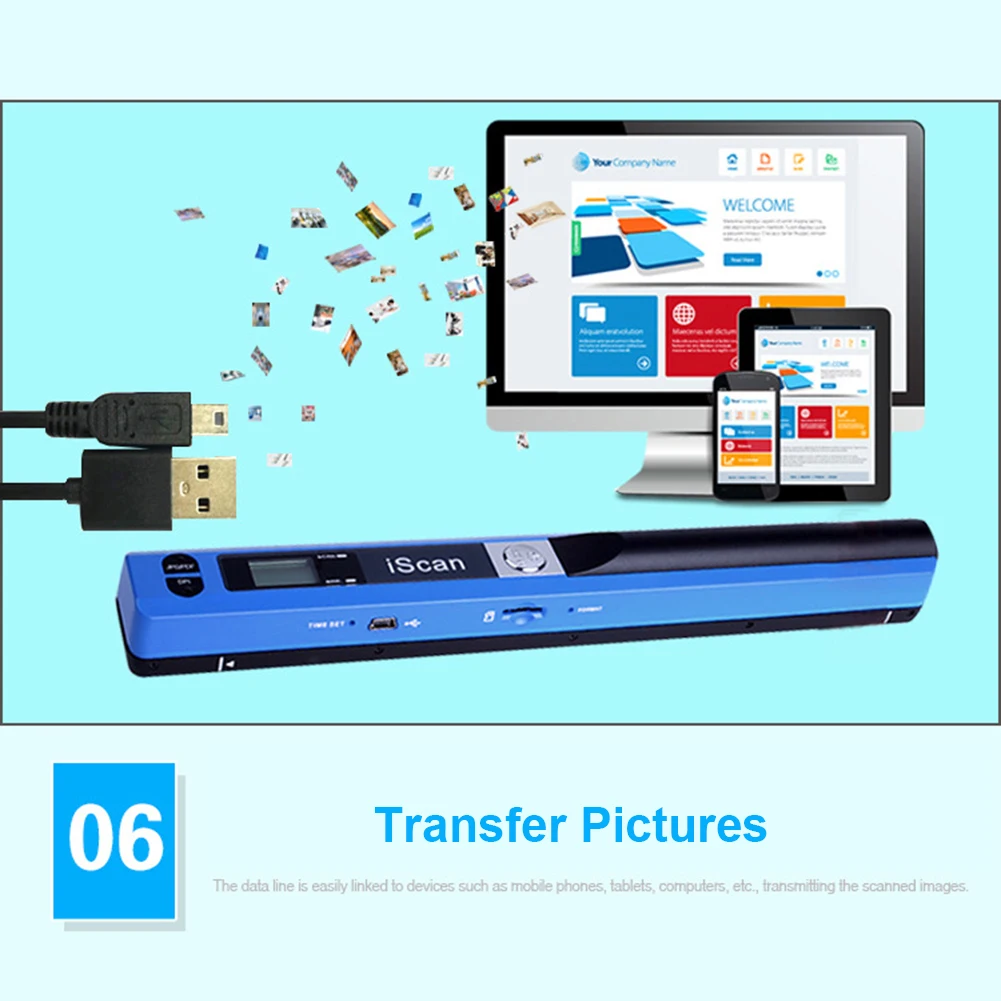 Handheld Portable Image Document Scanner PC A4 900DPI JPEG/PDF USB2.0 Laptop Scaner Photo Book Electric Scanning Tools