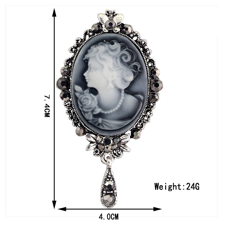 1PC 23 Styles Rhinestone Crystal Lady Vintage Surrounding Cameo Victorian Wedding Party Women Pendant Brooch Pin Free Shipping