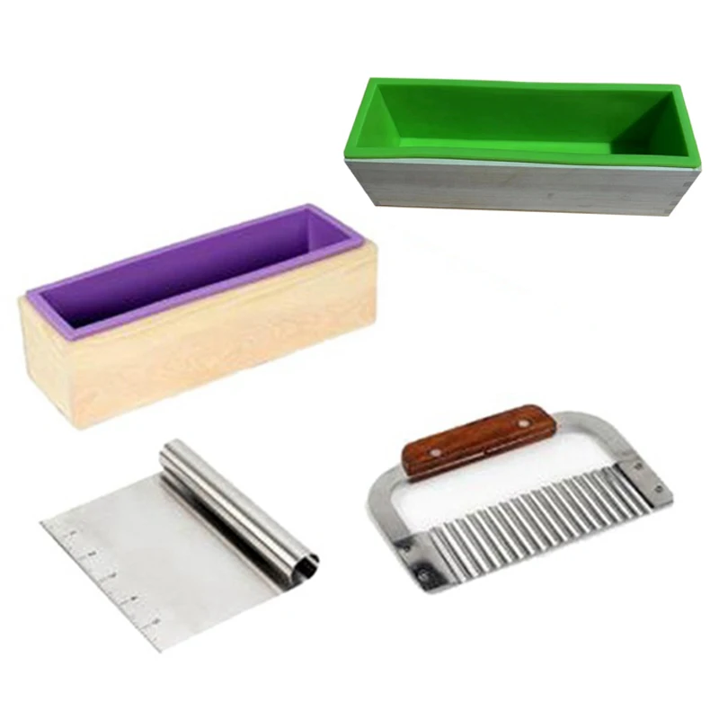 2 PCS Silicone Soap Molds DIY Handmade Loaf Mould with 2 Pieces Stainless Steel Cutters 1200Ml