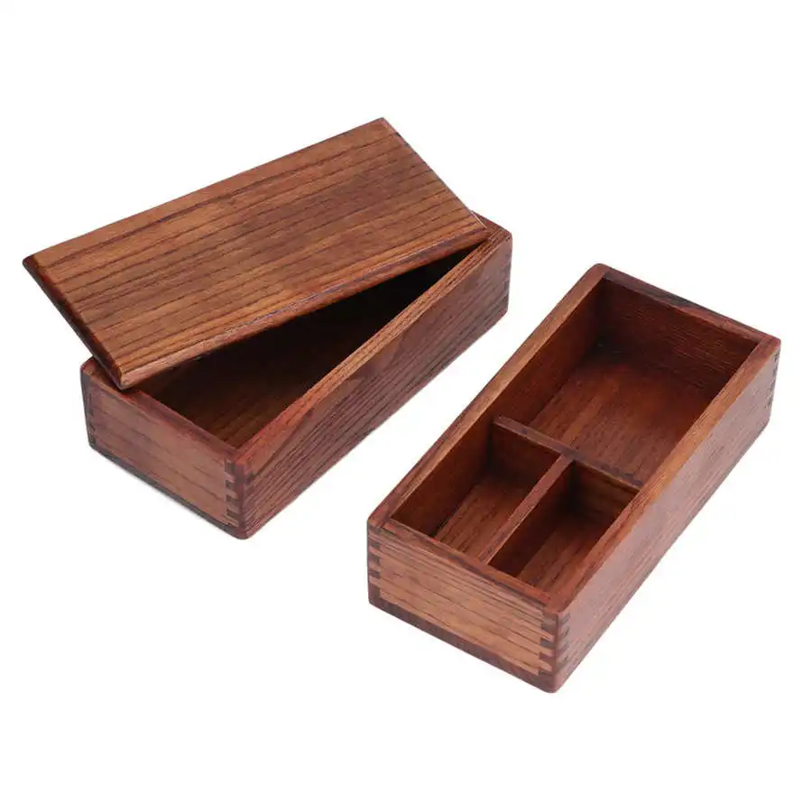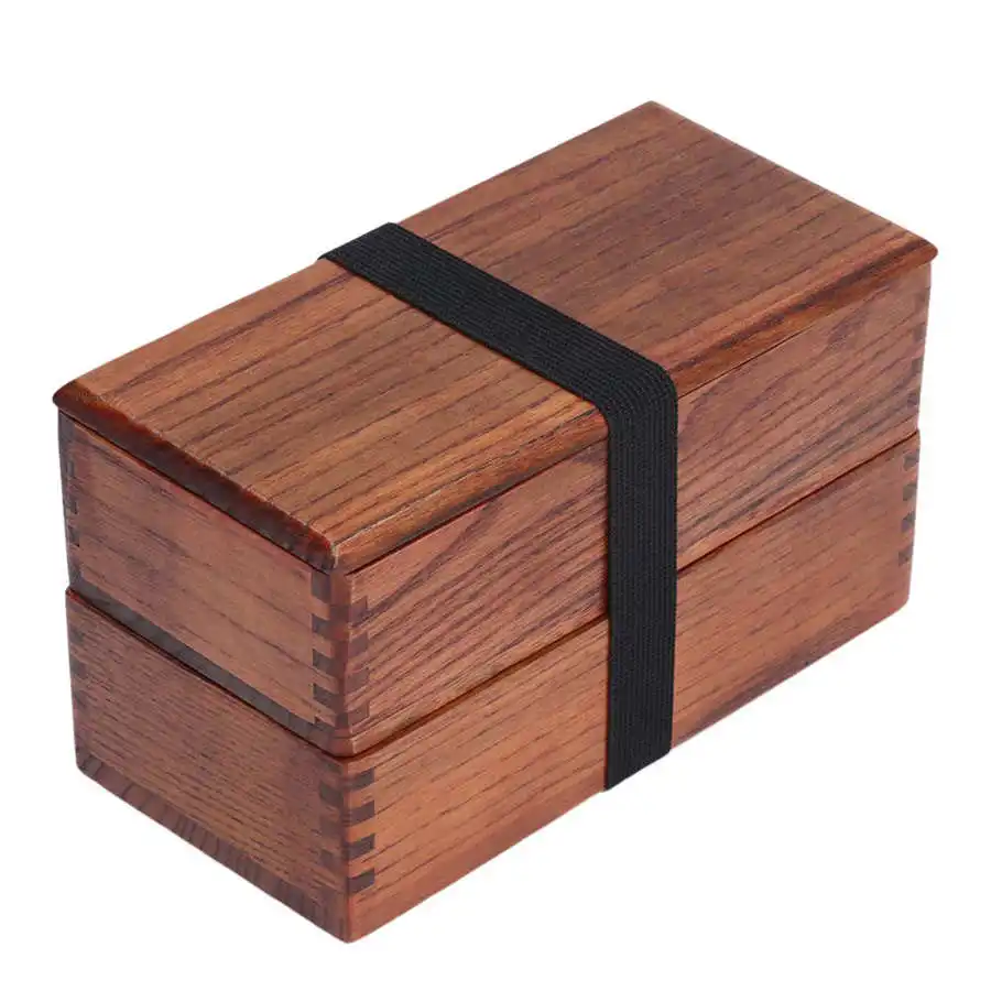 Прямоугольный Стекируемый 2 Слои Коробки для обедов из натурального дерева, бенто коробка суши пищевой контейнер кухонный набор посуды