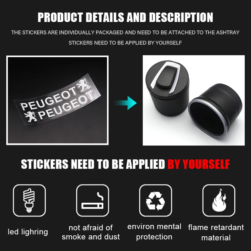 Автомобильный Пепельница светодиодный светильник для хранения мусора с высокой температурой сигарета держатель дыма для Peugeot 107 108 206 5008 301 3008 307