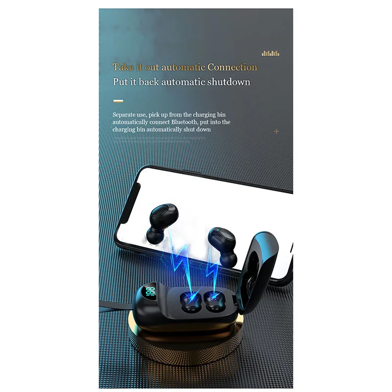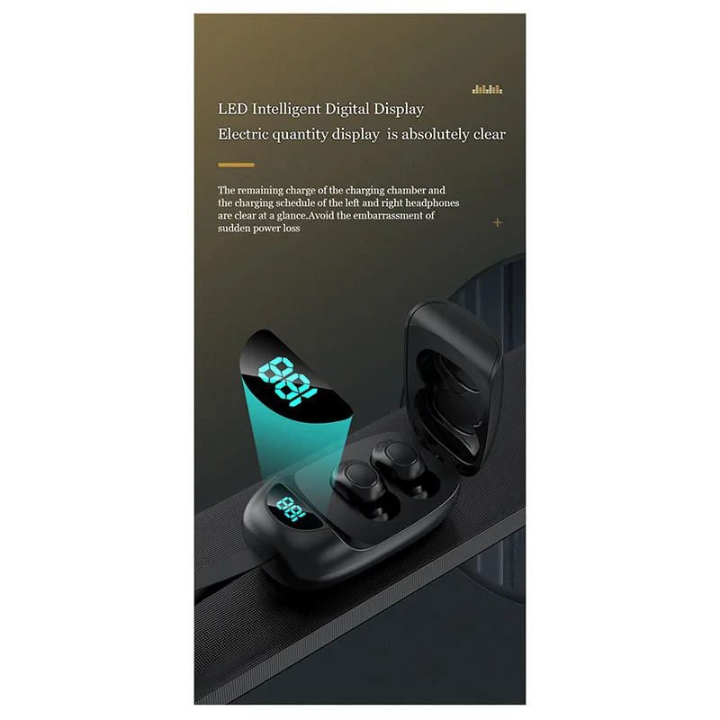 TWS Bluetooth V5.0 Sports Music Call Noise Waterproof LED Headsets