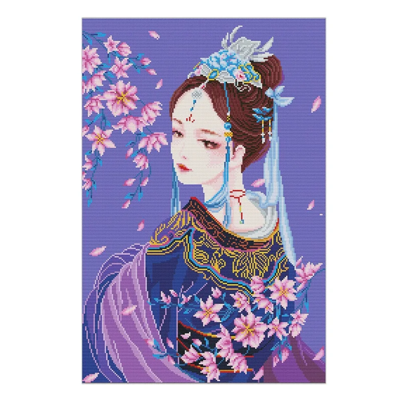 Cross Stitch Stamped Kits Printed Embroidery Cloth Needlepoint Kits Easy Patterns for Tang Costume Beauty 11CT