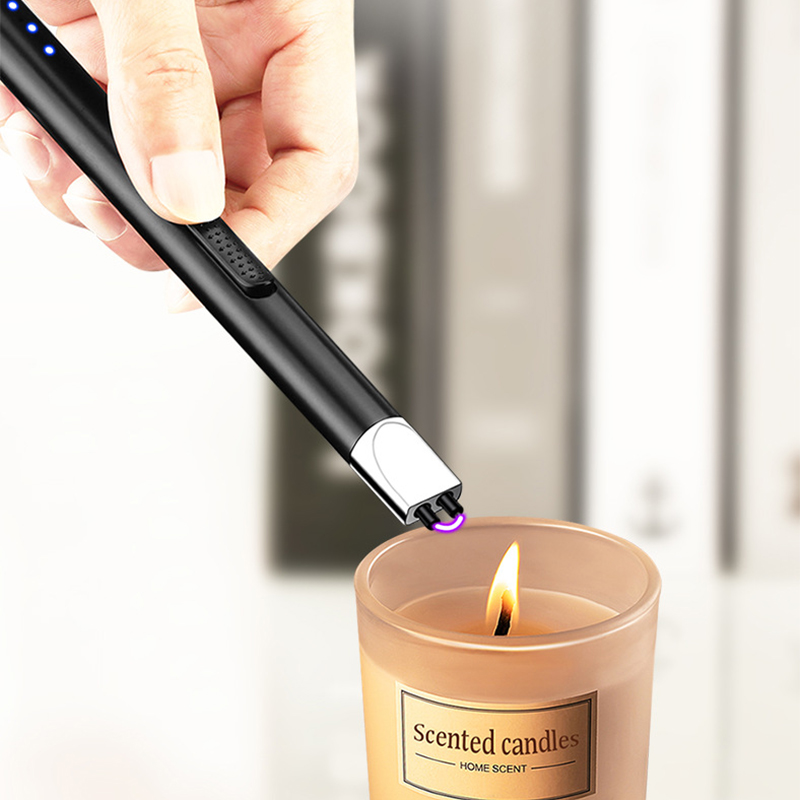 Электронная зажигалка для свечей длинное перо Форма ветрозащитная импульсная дуговая Зажигалка USB перезаряжаемая с дисплеем питания для свечи кухня Кемпинг барбекю