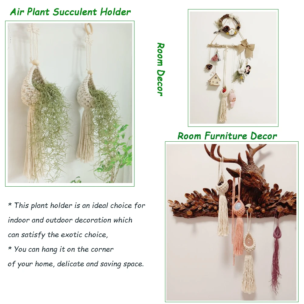 Богемный декор, воздушные вешалки для растений, домашний настенный держатель макраме, гобелен, висящий испанский мох, Tillandsia Usneoides, украшение для спальни