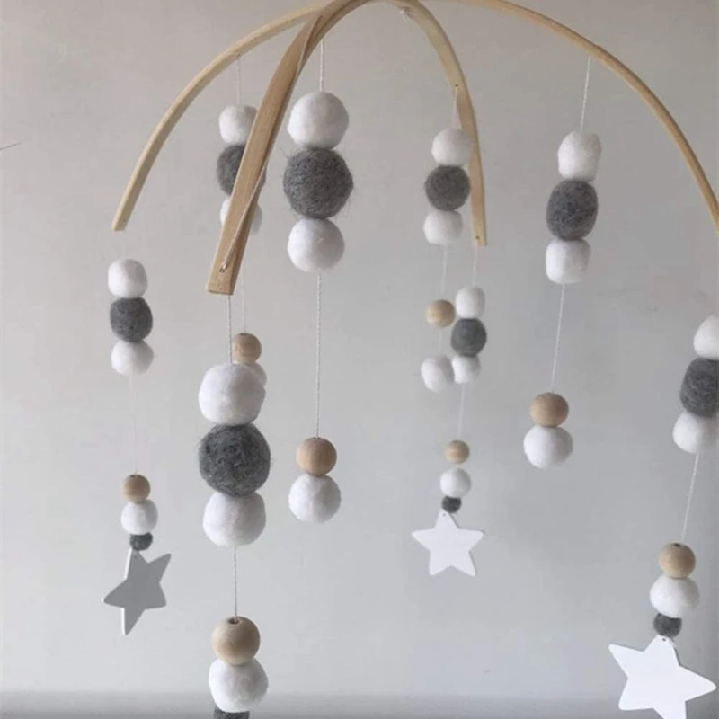 Bed Bell for Baby, DIY Wooden Mobile Frame for Crafts Natural Wood Mobile Hanger Mobile Kit Wind Chimes Bell Room 17Pcs